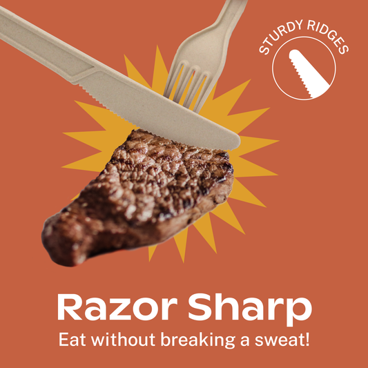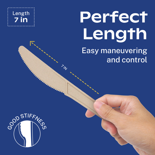 CORAL Light Brown 100% Compostable Knives - 120 Heavy Duty No Plastic Knives (7.0 inch) - Break Resistant with Smooth Edges, Ocean Friendly Alternative to Plastic Silverware - Biodegradable & Disposable Knives for Parties, Weddings, Picnics, BBQs, Camping