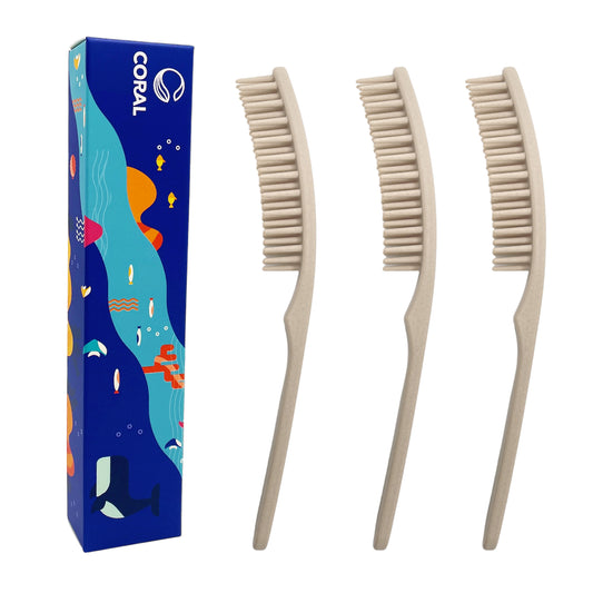CORAL 3 Bamboo Hair Combs - 100% Compostable Plant-Based Bamboo-Fiber Composite, Durable, Anti-static & Heat Resistant, For All Hair Types, Plastic & BPA Free - 3 Individually Packaged Combs